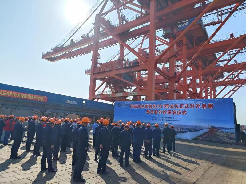 2022年12月13日上午10時30分,防城港漁澫港區(qū)401泊位正式對外啟用暨首艘外輪靠泊儀式舉行,參加儀式人員防城港市長:黃江;防城港碼頭董事長:蘇遠輝;商務副總:陳煒;上海寶英物流有限公司相關人員,以及其他相關口岸單位。