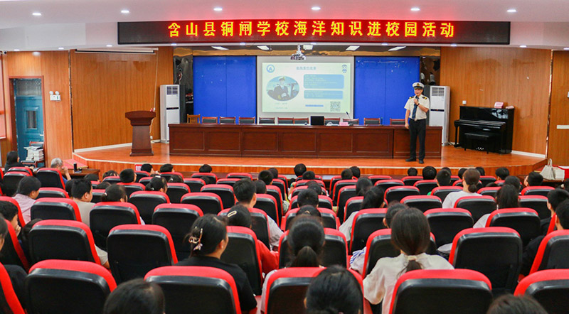 2023年9月20日下午,安徽省含山縣銅閘學(xué)校報(bào)告廳內(nèi)座無虛席、掌聲雷動(dòng)!銅閘學(xué)校七、八年級(jí)全體師生齊聚一堂,聆聽中國交通部高級(jí)船長胡月祥講解海洋知識(shí)。