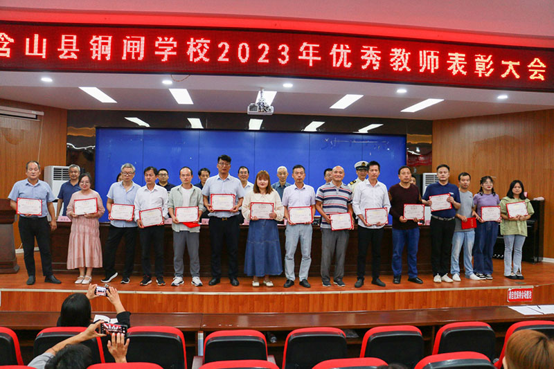 躬耕教壇,強(qiáng)國有我!為隆重慶祝第39個(gè)教師節(jié),激發(fā)銅閘學(xué)校廣大教師職工的工作熱情,樹立先進(jìn)典型,促進(jìn)學(xué)校工作開展,經(jīng)民主測(cè)評(píng)、支部推薦、學(xué)校黨總支研究,表彰了一批銅閘學(xué)校“優(yōu)秀教育工作者”、“優(yōu)秀班主任”、“優(yōu)秀教師”和優(yōu)秀處室、優(yōu)秀班集體。2023年9月20日下午,馬鞍山市寶英教育基金會(huì)與銅閘學(xué)校聯(lián)合舉行表彰先進(jìn)活動(dòng)!獎(jiǎng)勵(lì)資金全部由基金會(huì)無償贊助!參加會(huì)議的有:全體受表彰的老師,銅閘學(xué)校黨總支書記黃先、校長李榮等學(xué)校領(lǐng)導(dǎo),含山縣教育局黨委委員、縣總督學(xué)、工會(huì)主席王家林,銅閘鎮(zhèn)副鎮(zhèn)長司加玉,銅閘鎮(zhèn)關(guān)工委主任張林,馬鞍山市寶英教育基金會(huì)理事長、上海寶英物流有限公司董事長陳玉寶,原蕪湖市正廳級(jí)老領(lǐng)導(dǎo)、現(xiàn)任蕪湖老年大學(xué)校長王滄江,原含山縣政協(xié)主席黃智慧,馬鞍山女企業(yè)家協(xié)會(huì)副會(huì)長、含山總商會(huì)副會(huì)長、政協(xié)委員任榮等。
